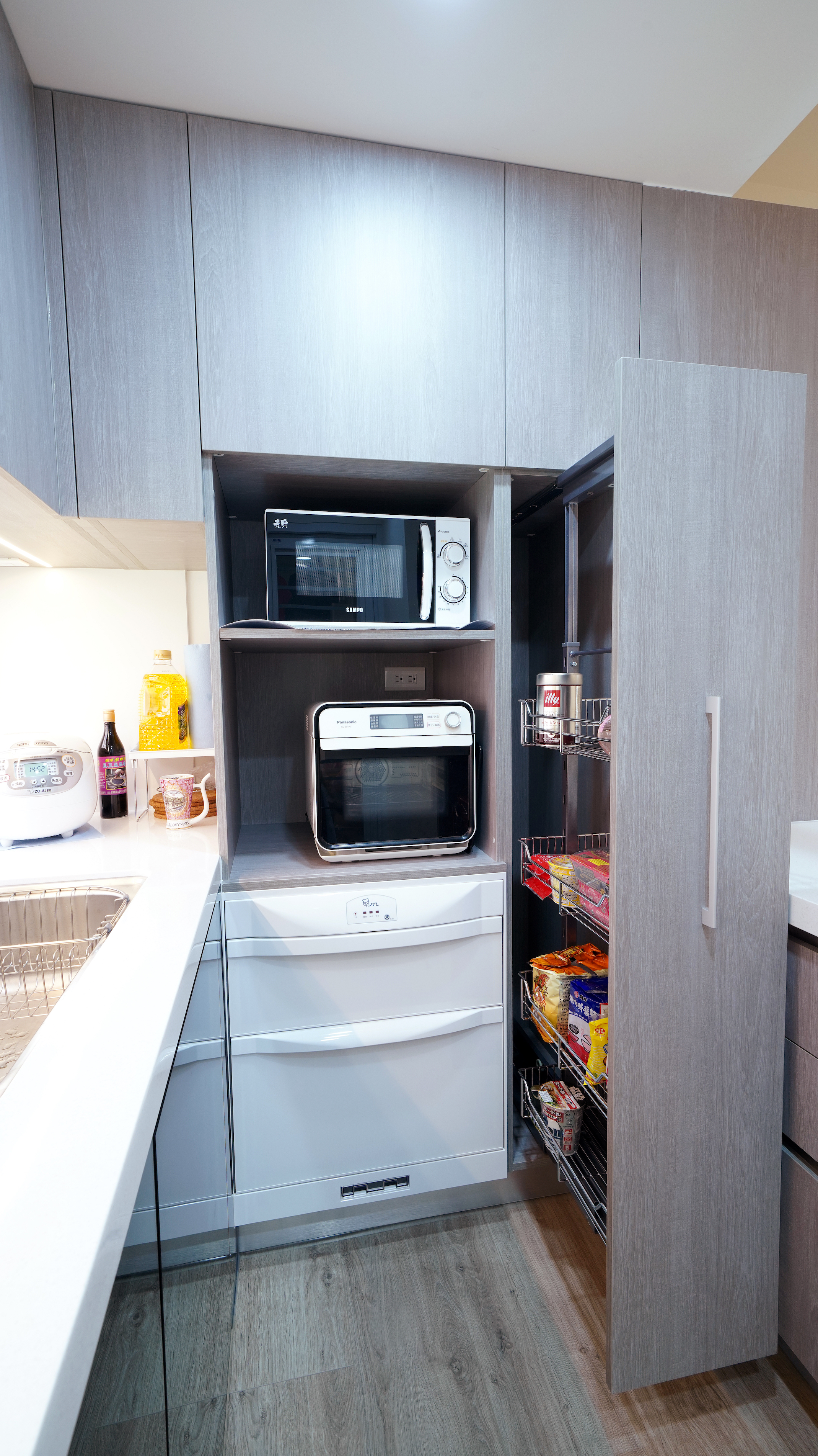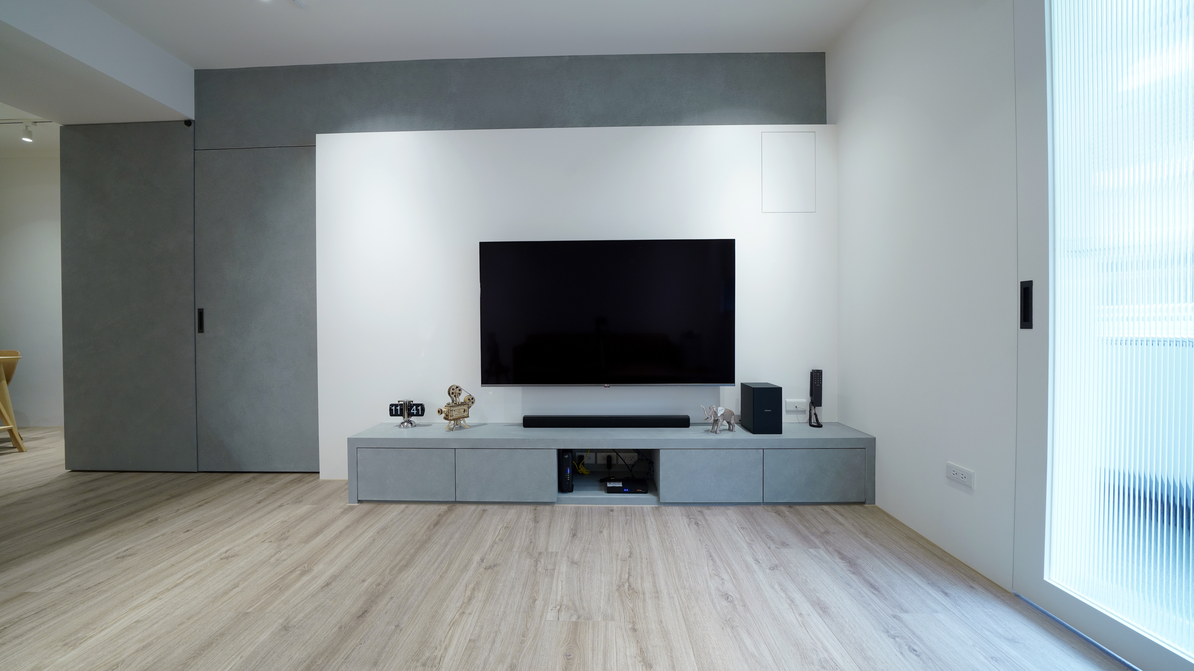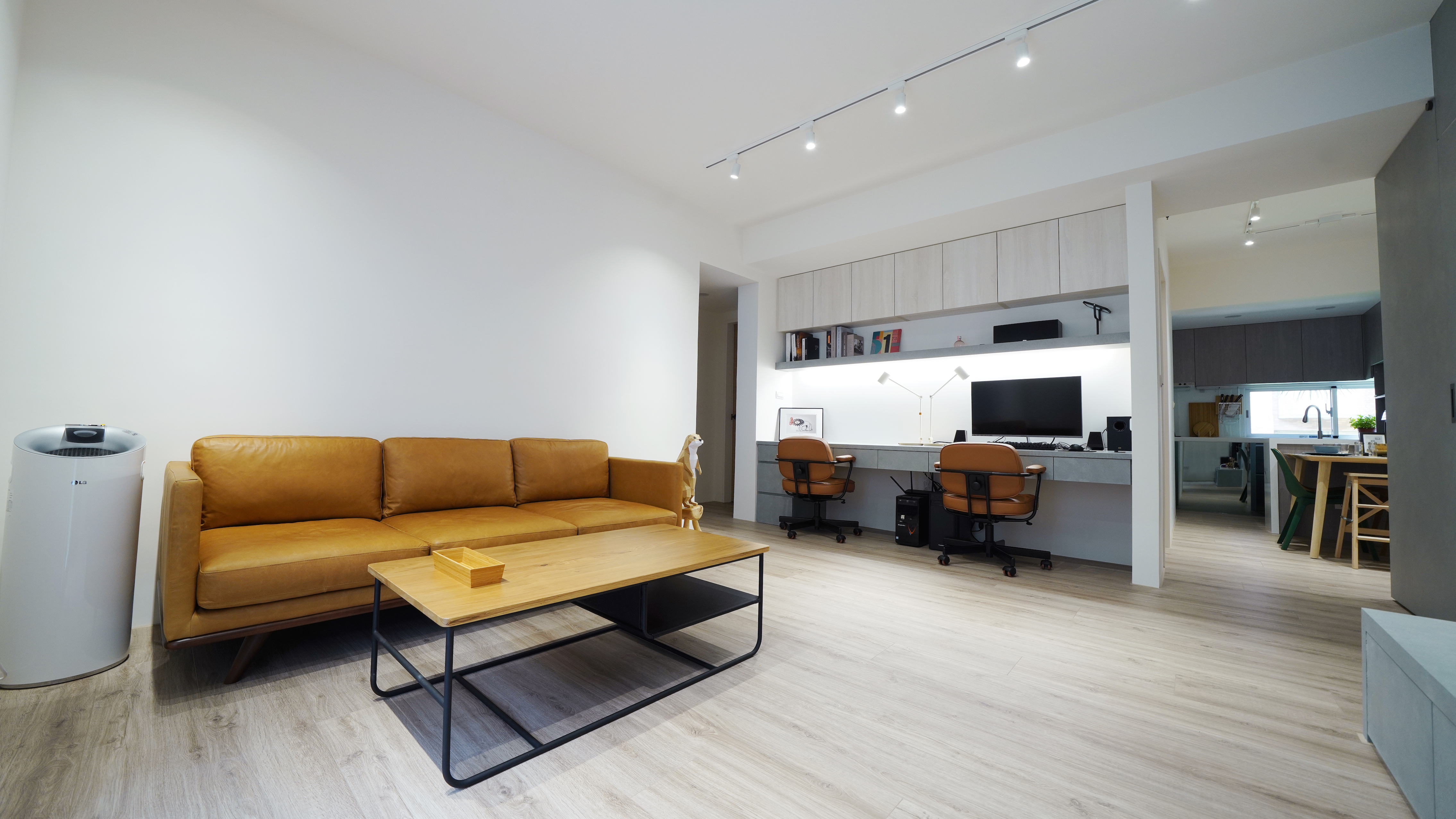 材料: 超耐磨木地板,創意塗料,木作櫃,系統櫃