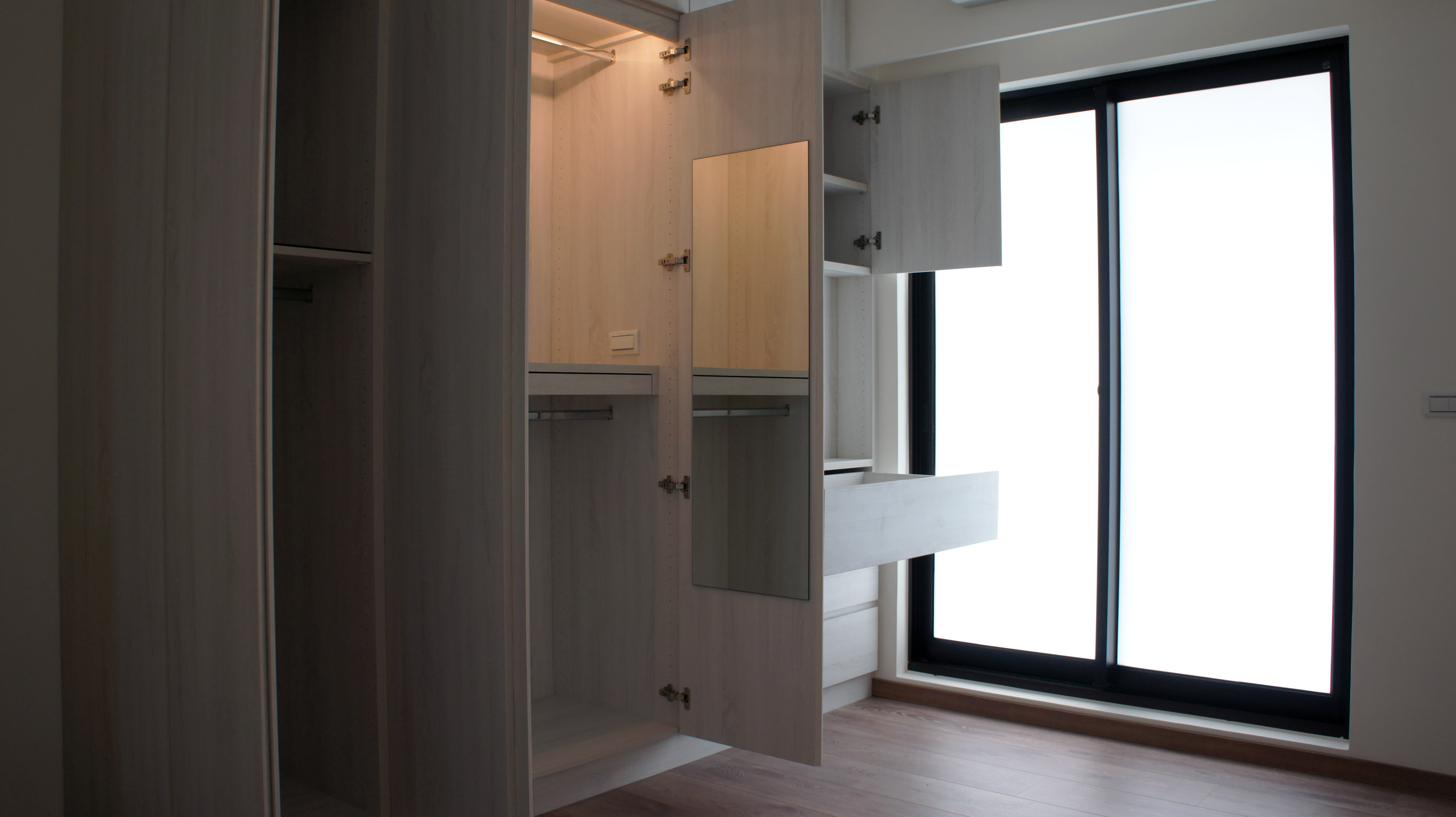 材料: 實木皮,明鏡,人造石,木紋磚,木地板