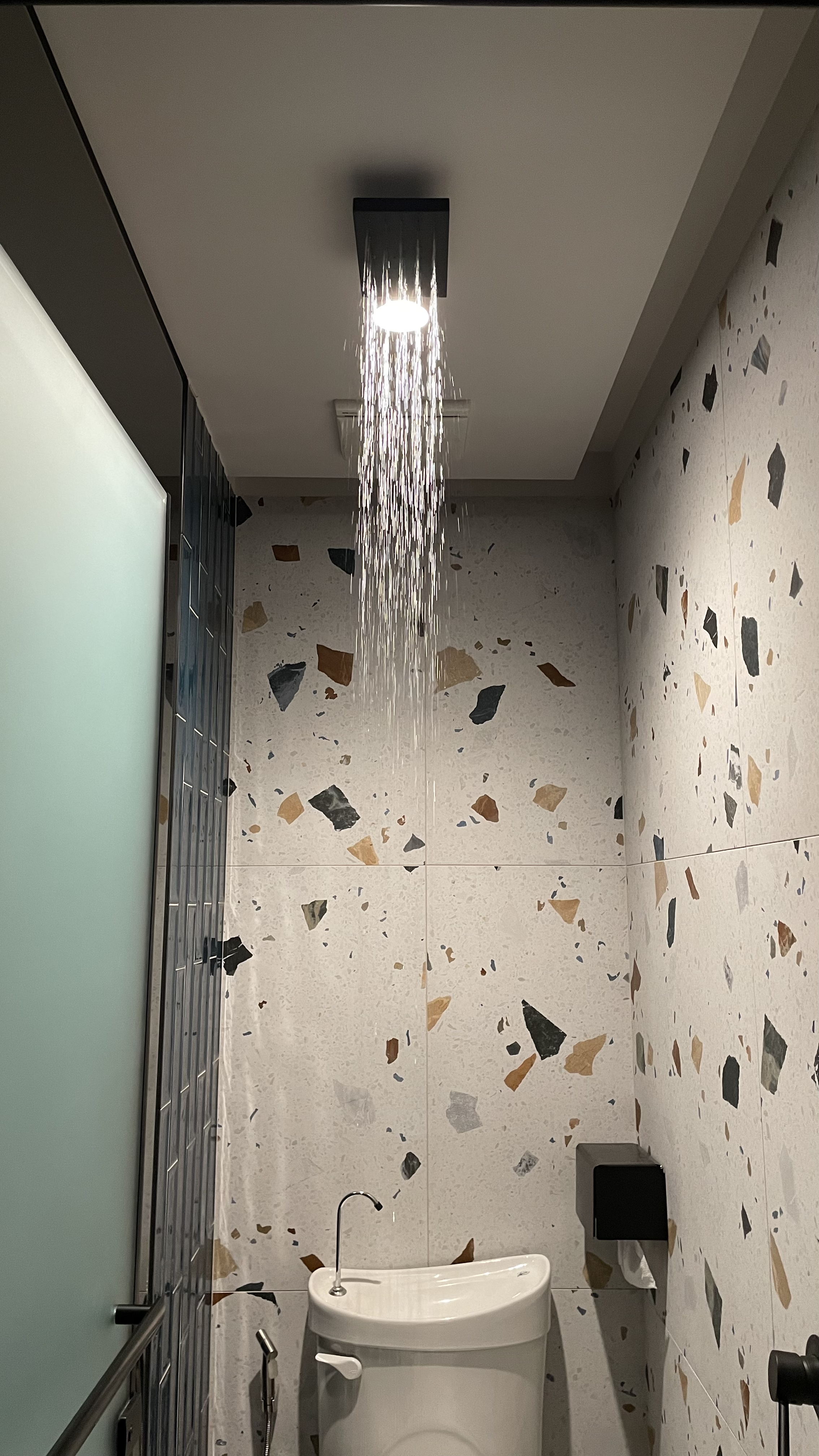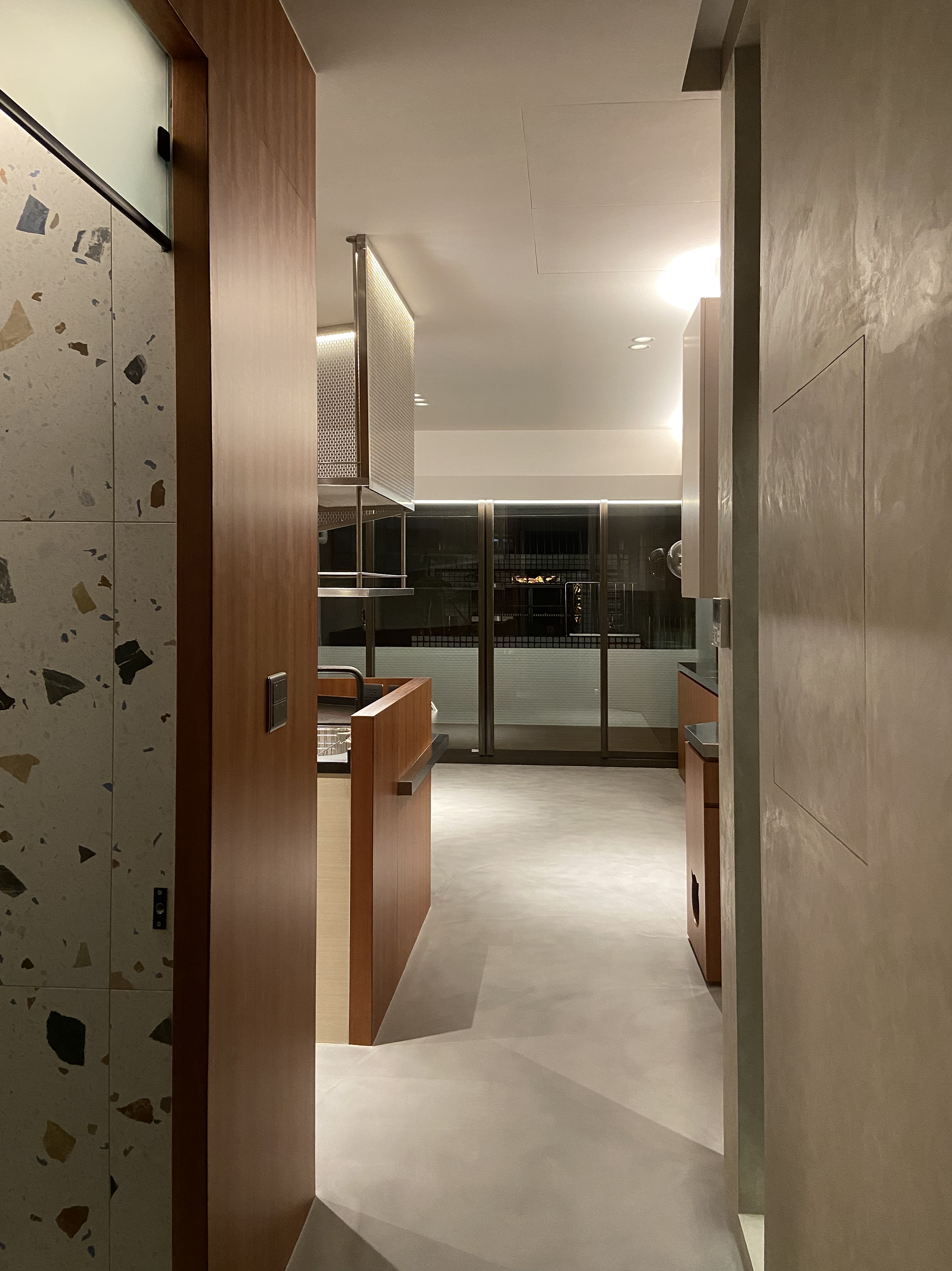 材料: 盤多魔、水磨石磚、不銹鋼、長虹玻璃、木地板